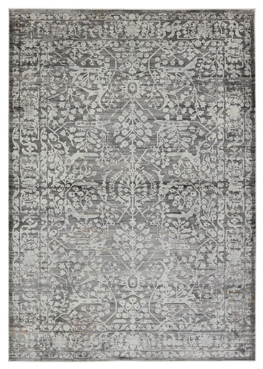 • A casual greyscale palette makes this traditional area rug especially simple to coordinate within any interior theme. Use to flatter classic and contemporary interiors alike.