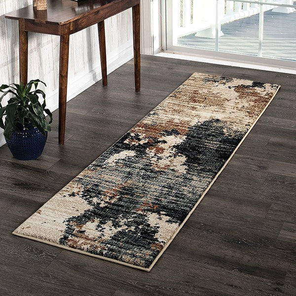 • A wonderful foundation piece for your living room, entryway, or kitchen, the mottled, abstract design and relaxing tones of this piece give it a casual vibe.