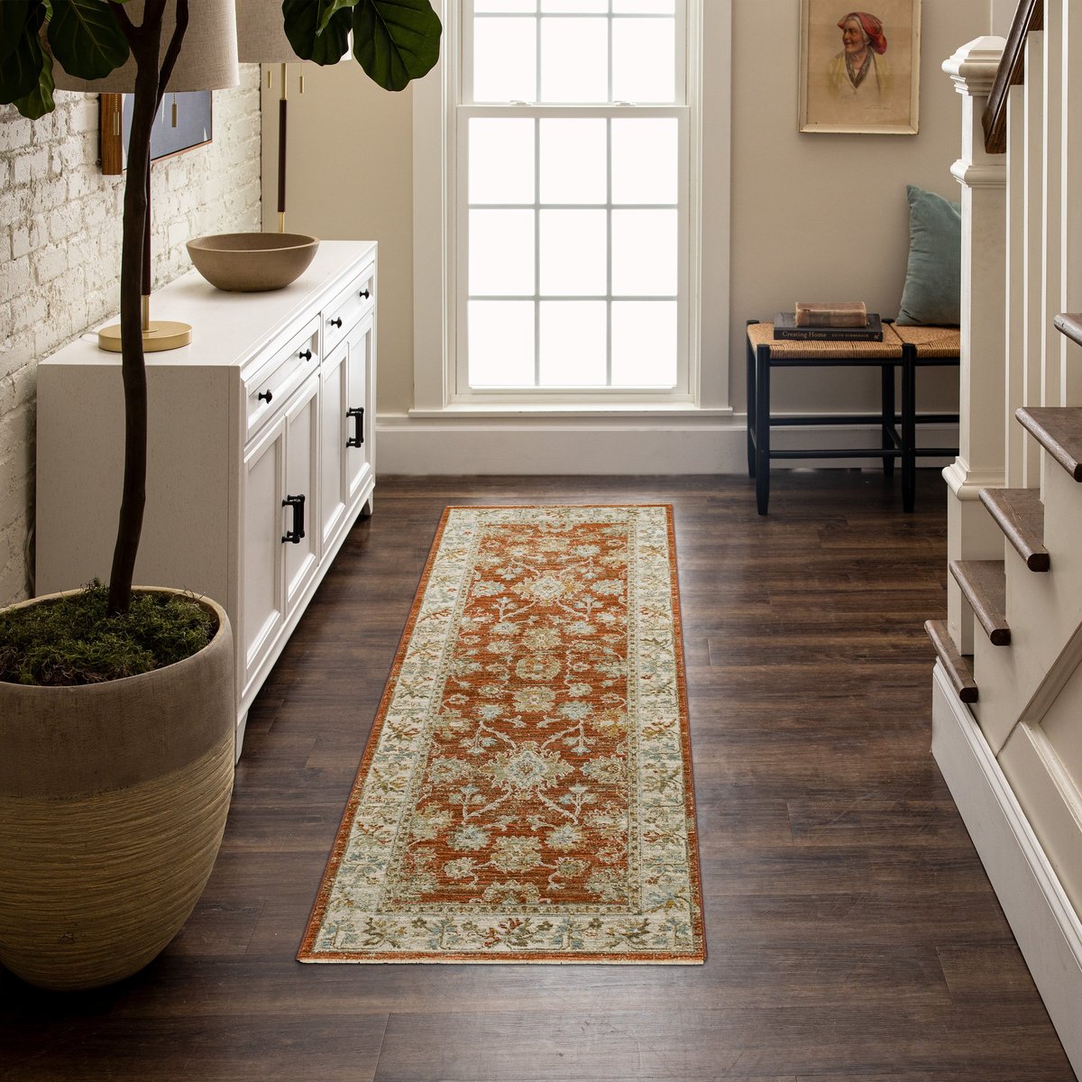 Traditionally inspired palmettes and vinery details are cast in a soft neutral palette in Karastan's Iznik Area Rug in Brown. Ideal for elegant entryways, luxurious living rooms, beautiful bedrooms, opulent offices and more, the designs of the Adalia Collection are thoughtfully woven with a soft and stain-resistant blend of synthetic yarns. Imported from Turkey, each debut of this collection exudes international flair with a vintage fringed trim along the edges. Available in a spectrum of sizes, this area rug is beautiful as a set or solo.