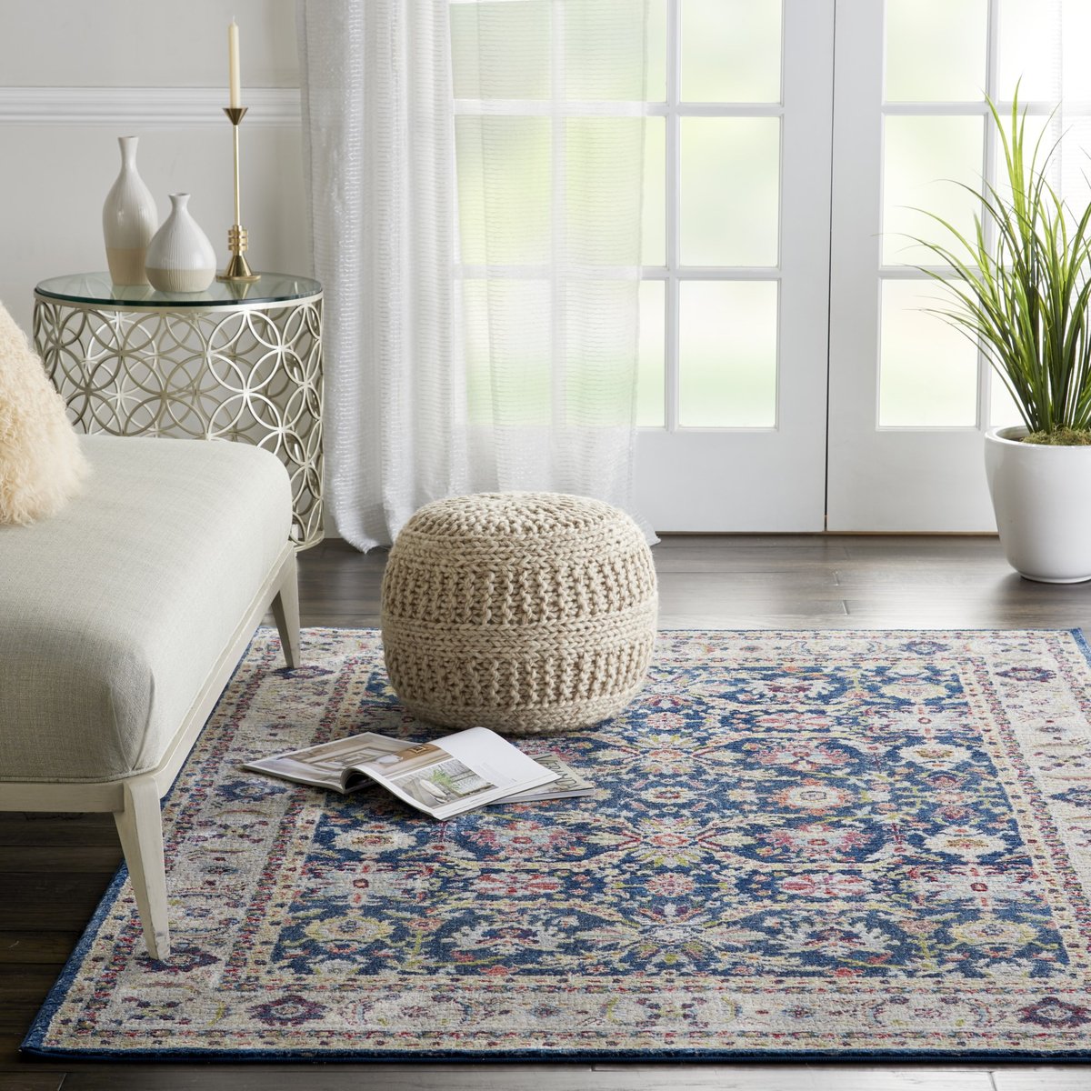 • This rug's ½" pile and lack of fringe are perfect for the homeowner who wants the look of an antique rug without the hassle of cleaning an antique rug.