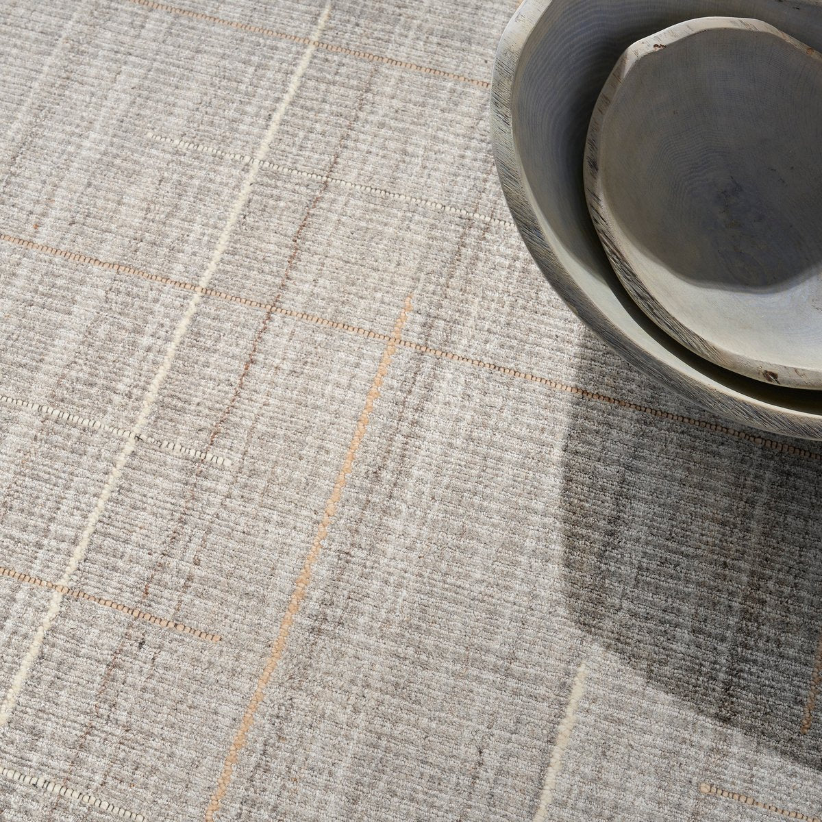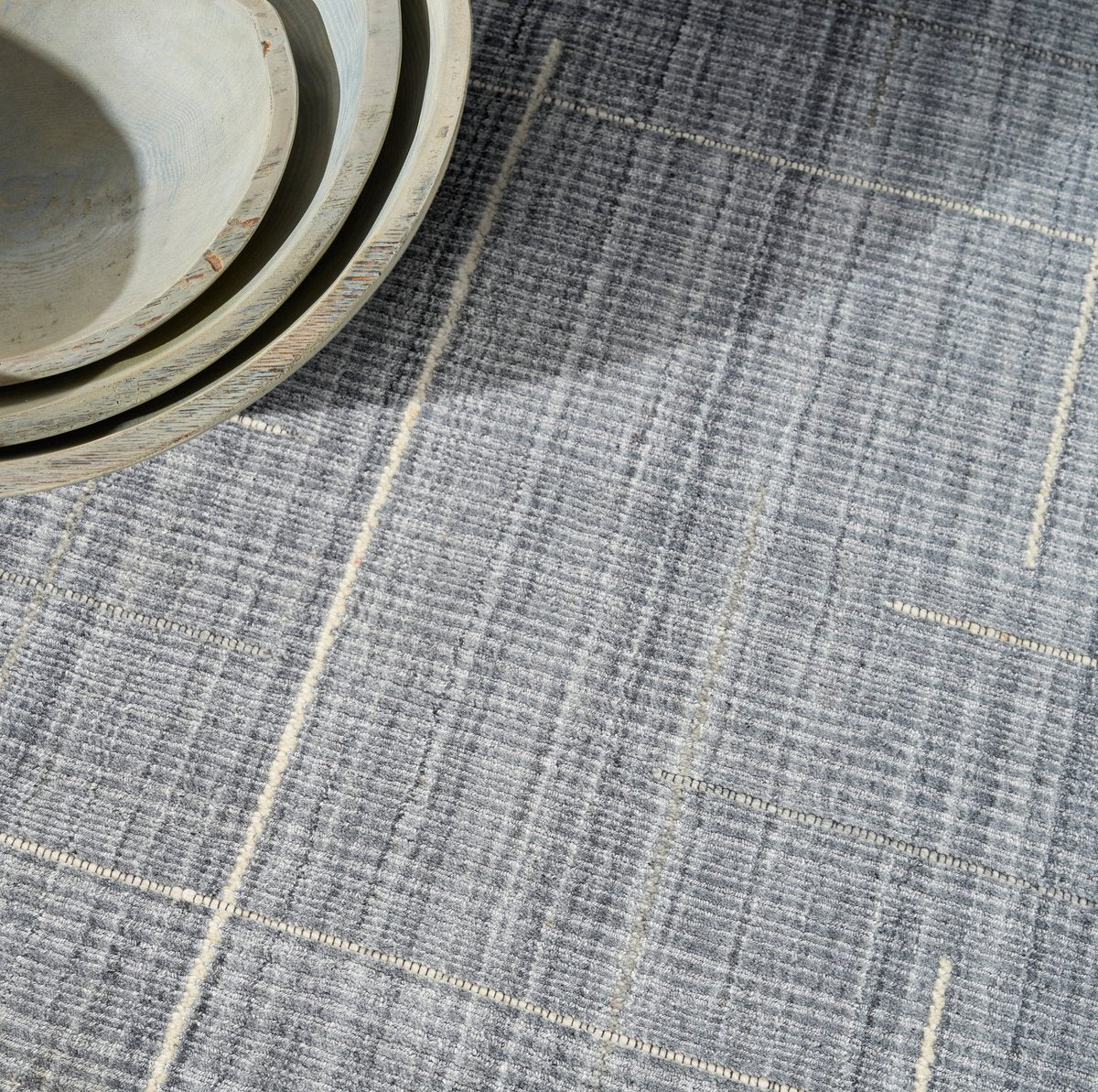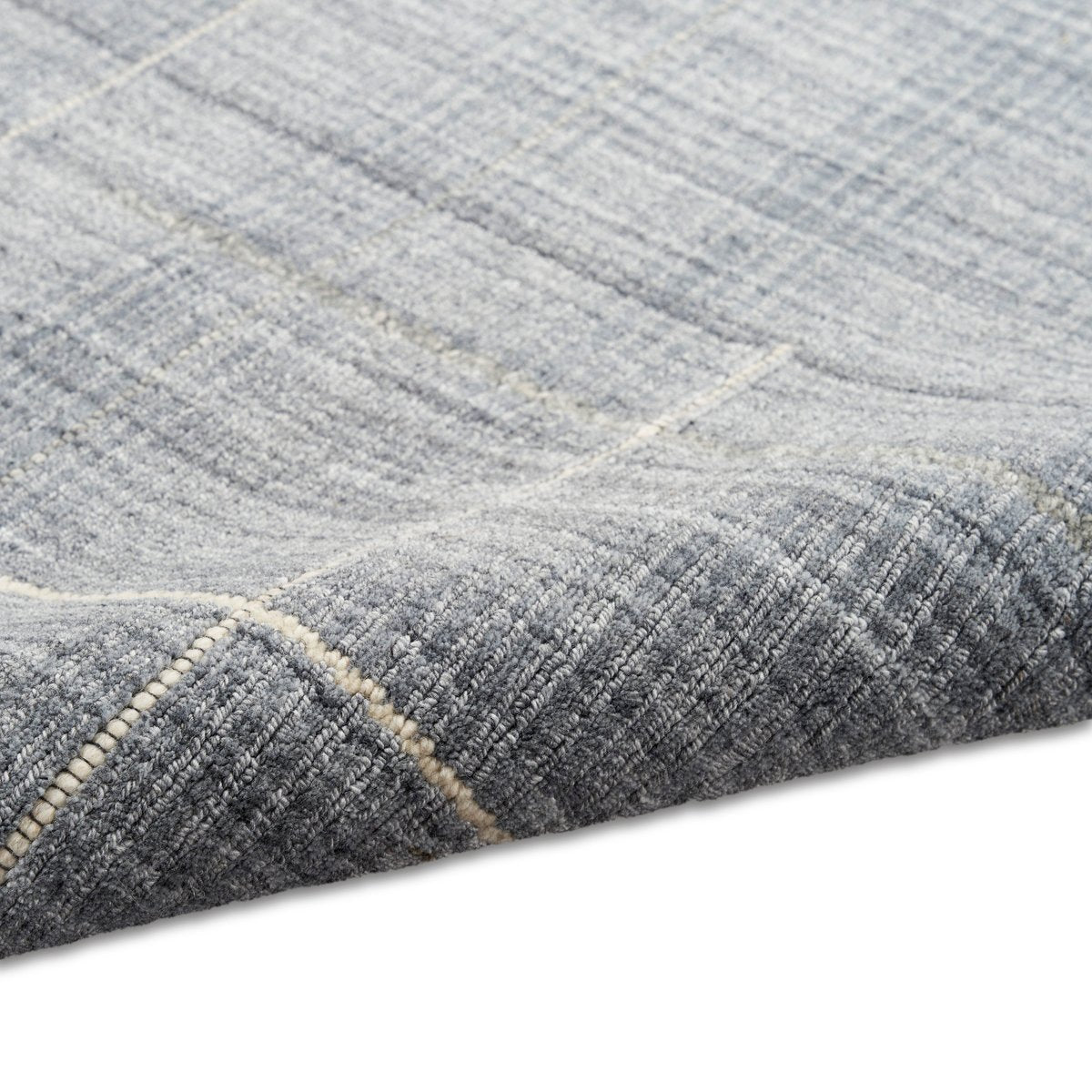 • Boasting a heathered and variegated background with thoughtfully placed stripe accents, this modern area rug is sure to capture your attention time and time again. Choose between a natural, denim, or gray colorway to create a beautifully coordinated space.