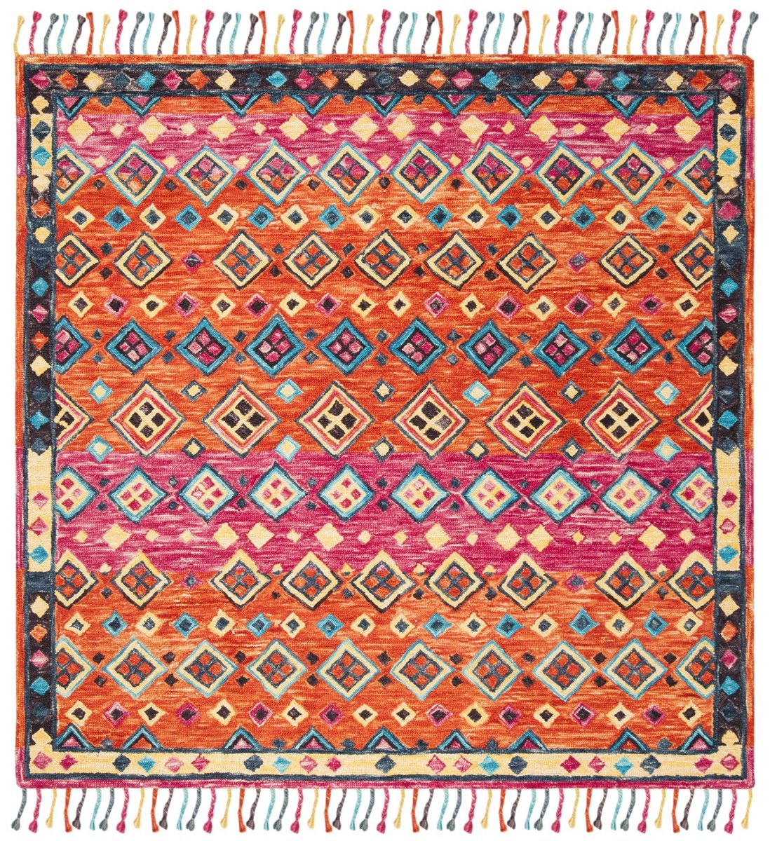 Add rustic-chic charm with the Southwestern-inspired style of our Safavieh Aspen APN-138 rug and its vibrant color palette. Hand-tufted of wool, this instant statement piece also boasts colorful fringed ends for the perfect finishing touch of style.