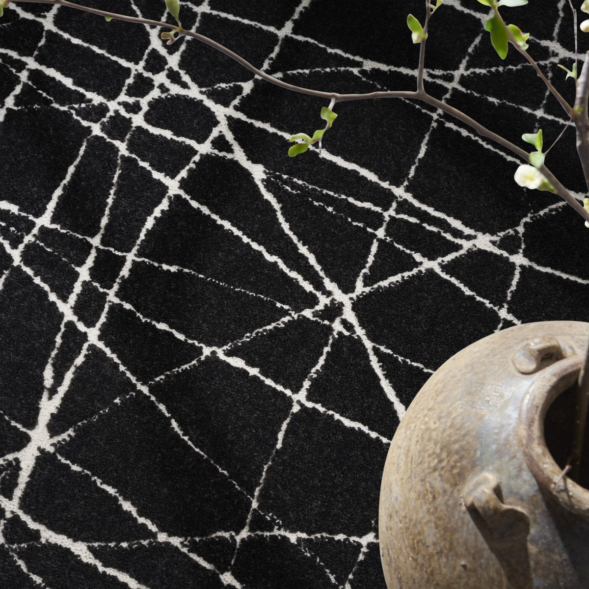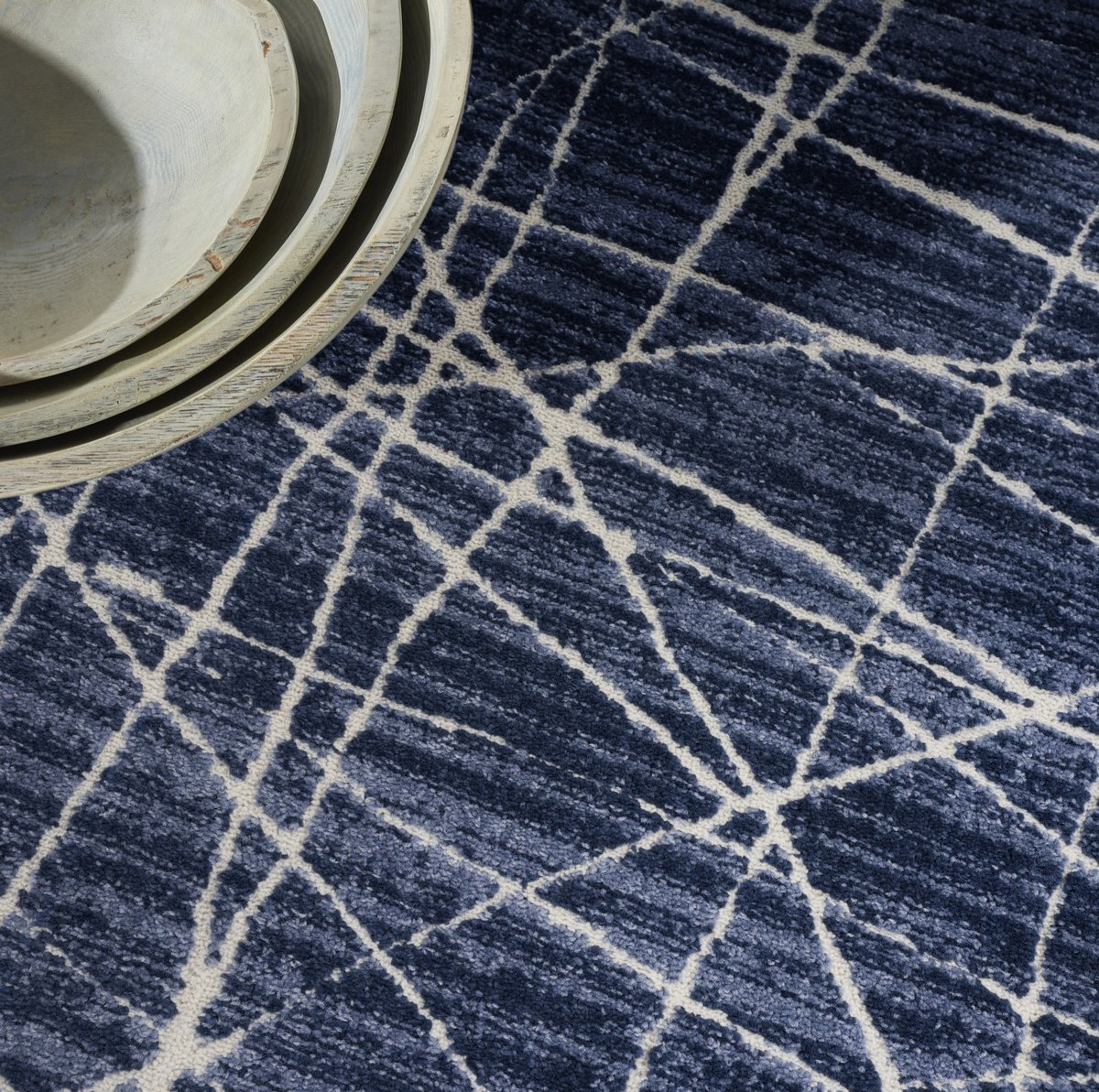 • High-low pile construction emphasizes each line with dimensional valleys. Use to bring a sense of large-scale texture and pattern to your favorite interior placements throughout the home.