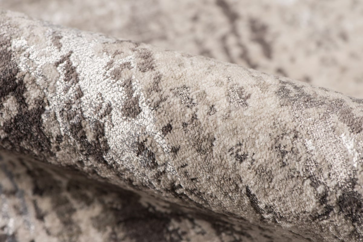 • This rug has a modern pattern with a silver, grey, and charcoal palette that can fit in with a wide range of existing interior themes.
