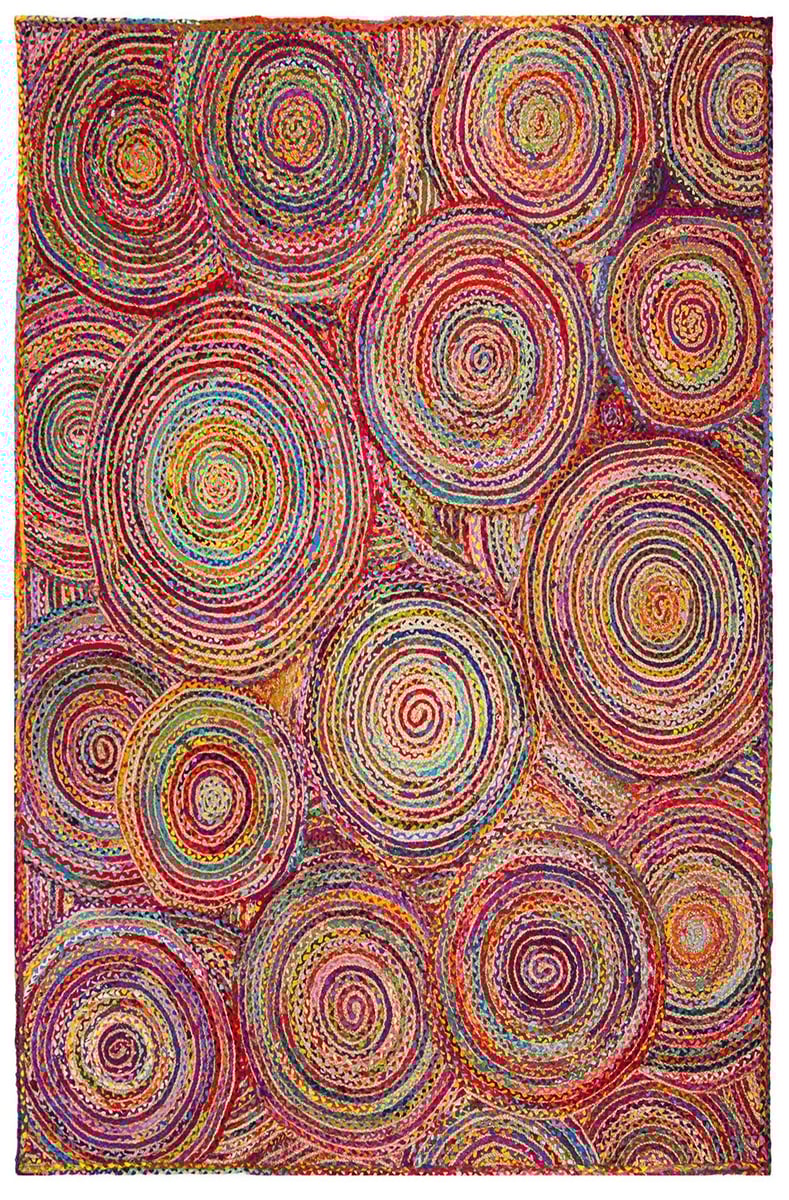 • With its warm tones and boho-chic style, this circular rug makes an inviting, energizing statement.