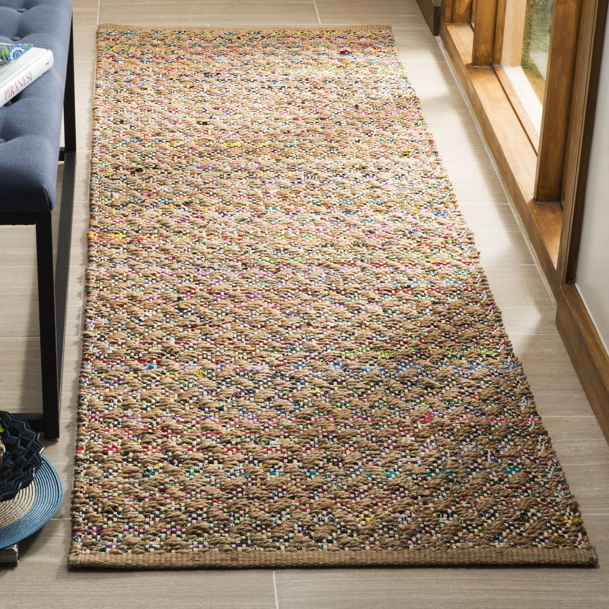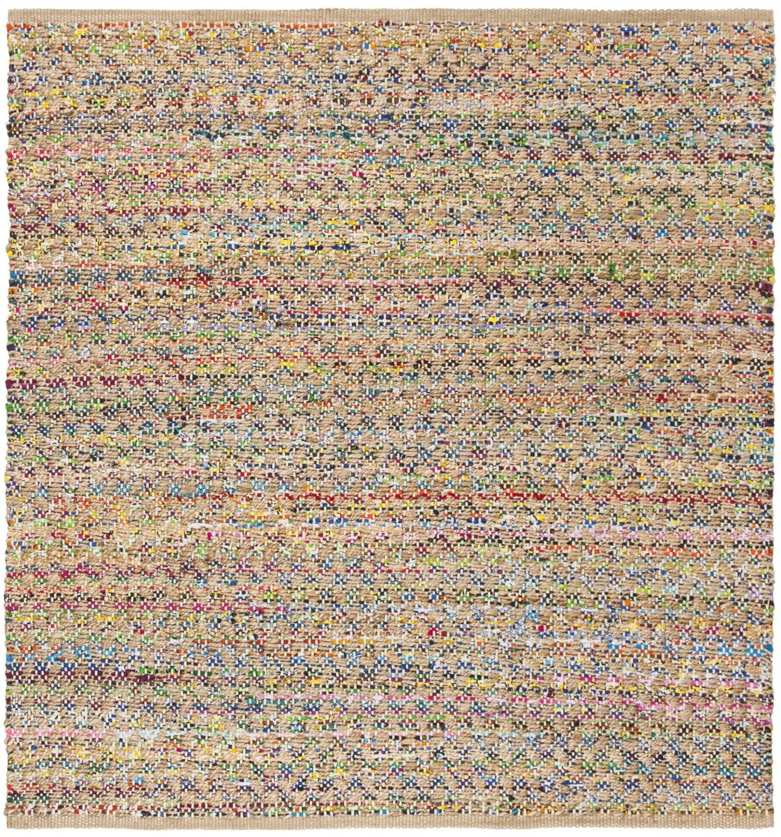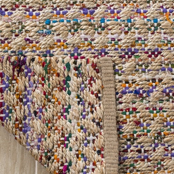 • A blend of jute, chindi, and cotton gives this hand-woven area rug an enviable texture.