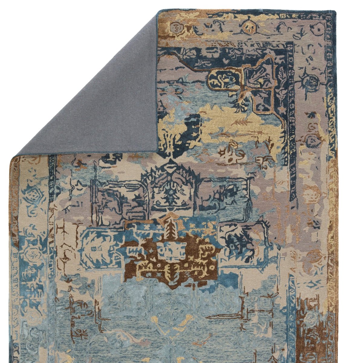 The Citrine collection is an assortment of distressed Old World patterns reinterpreted for modern design. The hand-tufted Forza rug showcases a center medallion, accented by cool and contemporary hues of gray, tan, brown, gold, and various tones of blue. Made of viscose and wool, this timeless rug boasts an ultra-soft feel and elegant, subtle sheen. The plush material best suits low traffic spaces of the home, such as bedrooms, formal dining areas, formal living rooms, and sitting rooms.