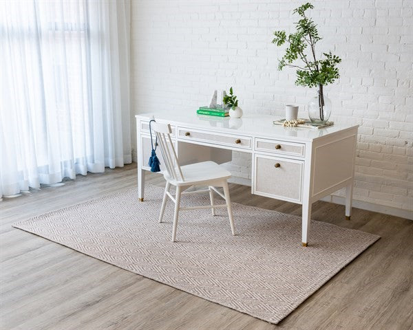 • With a simple, geometric-meets-contemporary design in a natural hue, our indoor-outdoor floor covering is incredibly versatile, so it can be place just as easily inside as poolside.