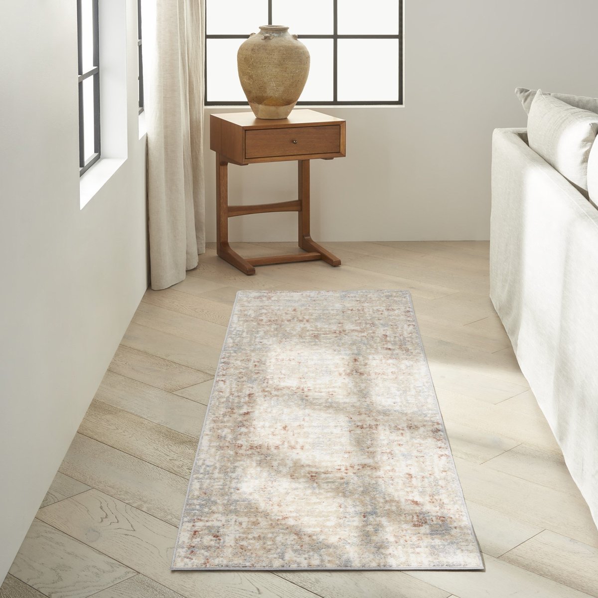 • Boasting subtle pops of rust against neutral ivories and grays, this abstract, modern area rug is a gorgeous way to update your favorite room.