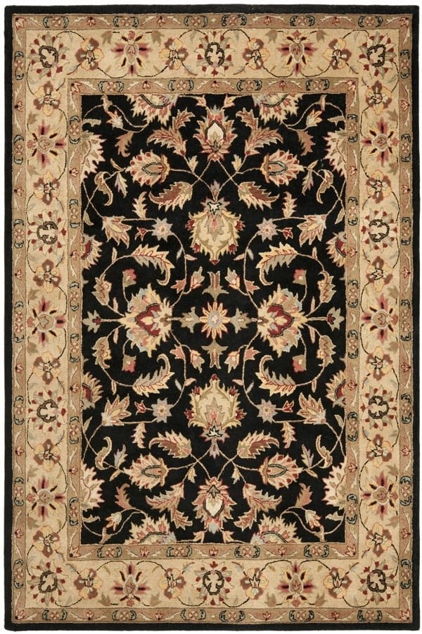 - Artisans created this rug using premium wool and hand-tufting to create the dynamic floral and vine patterns in black and gold.