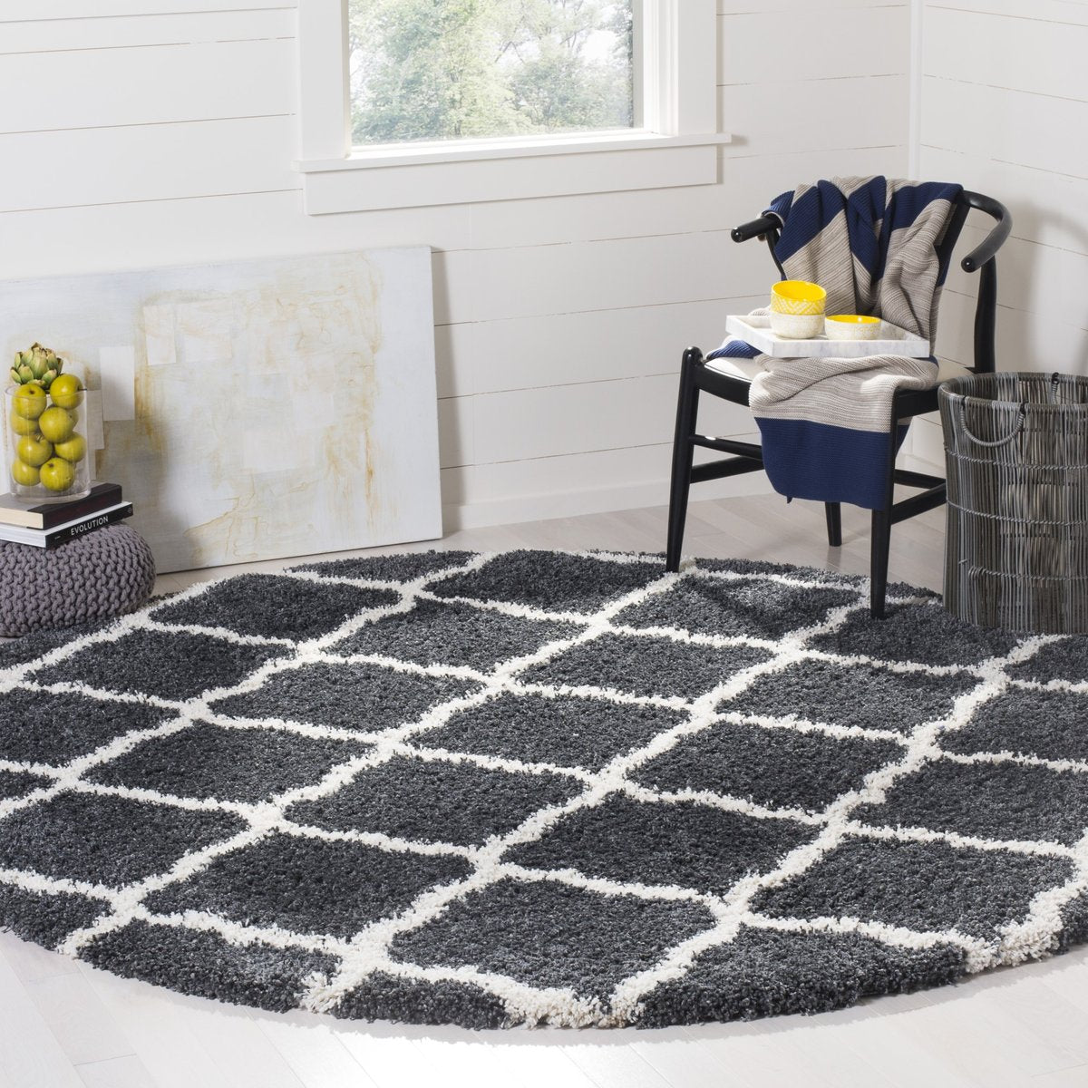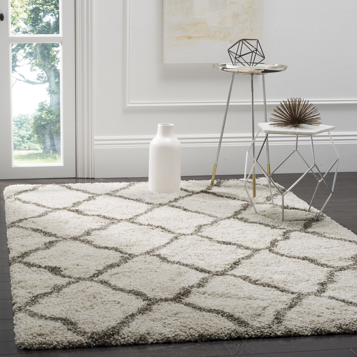 Safavieh makes soft luxurious pile more accessible with the innovative Hudson Shag collection. The SGH283 area rug draws the eye with its charming lattice design, the bold lines meandering from edge to edge for casual appeal.