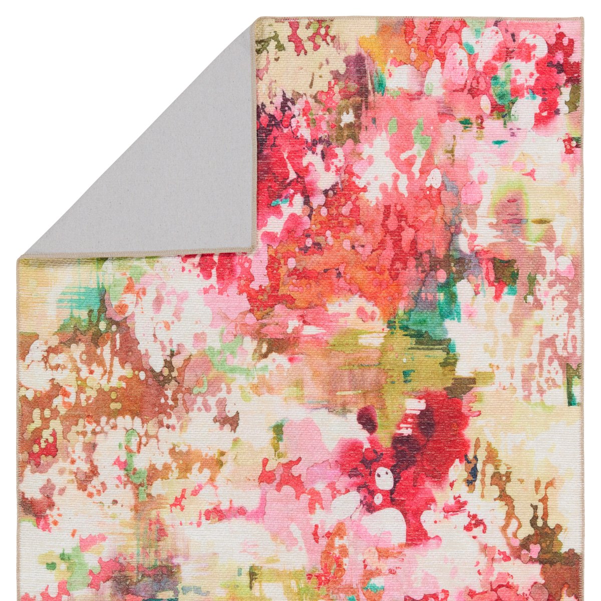 • In vivid pink, red, and green tones, this modern area rug is sure to make an eye-catching addition to your patio or living room. The abstract floral pattern promises an artistic and sophisticated vibe, whether you use it indoors or out.