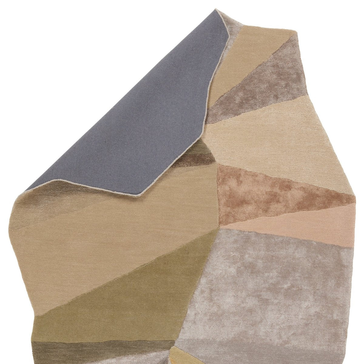 The sleek and angular Iconic collection infuses interiors with bold colorways and modern style. A playful geometric motif and on-trend tan, green, beige, yellow, and bronze colorway come together to form the irregularly shaped Sabah rug. Hand tufted of viscose and New Zealand wool, this fresh accent boasts cut and looped pile for added texture and dimension.