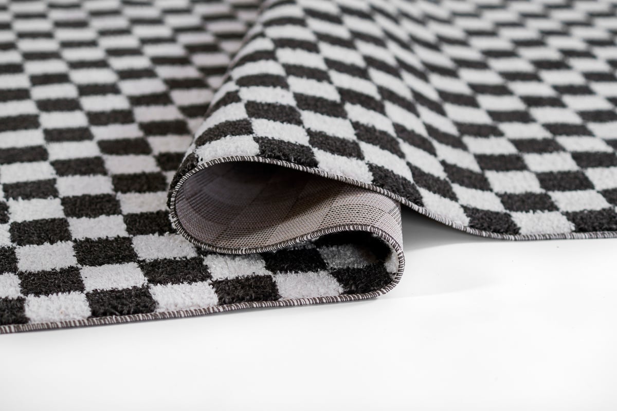 • An all-over checker pattern captures a perfectly on-trend aesthetic suitable for the most current interior decor themes. This contemporary rug is available in a variety of adaptable colorways for endless decorative possibilities.