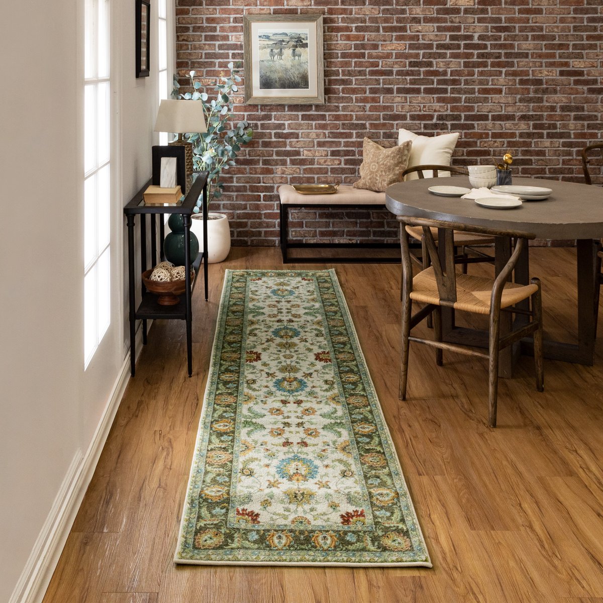 An intricate ornamental floral pattern in a versatile color combination adorns the Kaleidoscope Tatiana Area Rug by Karastan Rugs bringing traditionally inspired style into any space. Machine tufted with premium SmartStrand Triexta synthetic yarn, this area rug offers an irresistible plush feel plus superior strength stain resistance and vivid color clarity that withstands everyday wear. Available in runners, 5x8, 8x10, and other popular sizes, this collection is a great choice for adding style to a variety of spaces in your home such as living rooms, bedrooms, dining rooms, and more. This exquisite collection beautifully blends avant-garde aesthetics with Karastan Rug's legendary quality for a durable design that you can depend on in your everyday moments.