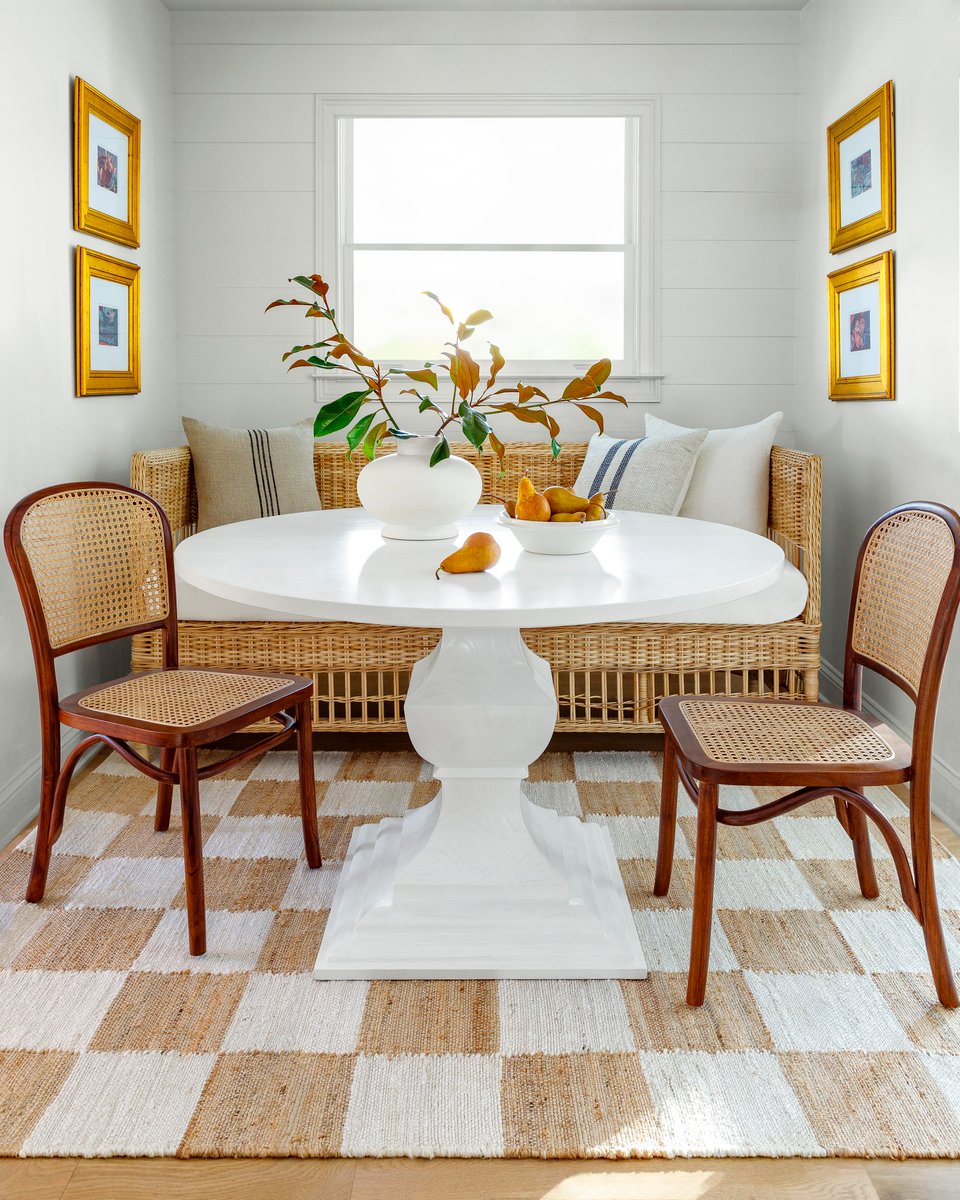 • Warm tan and bright white jute alternate in squares to create an on-trend check. This contemporary rug would make a fabulous fit with boho, postmodern, and farmhouse decor themes.
