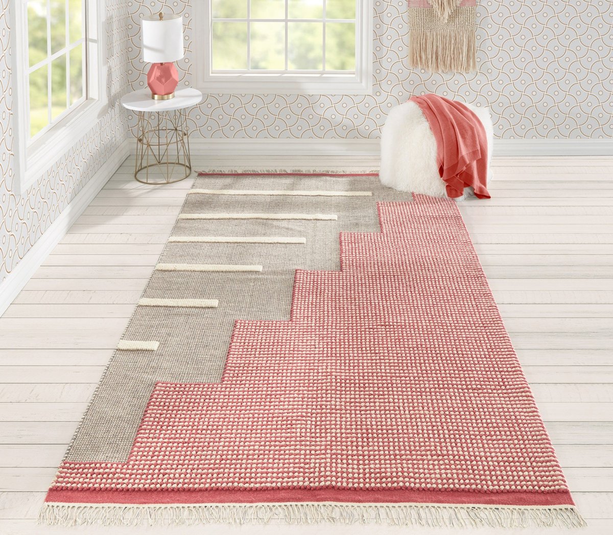 • Boasting a simple geometric design with plenty of contemporary appeal, this chic, fringed piece offers a stunning backdrop to entryways, bedrooms, and living rooms.