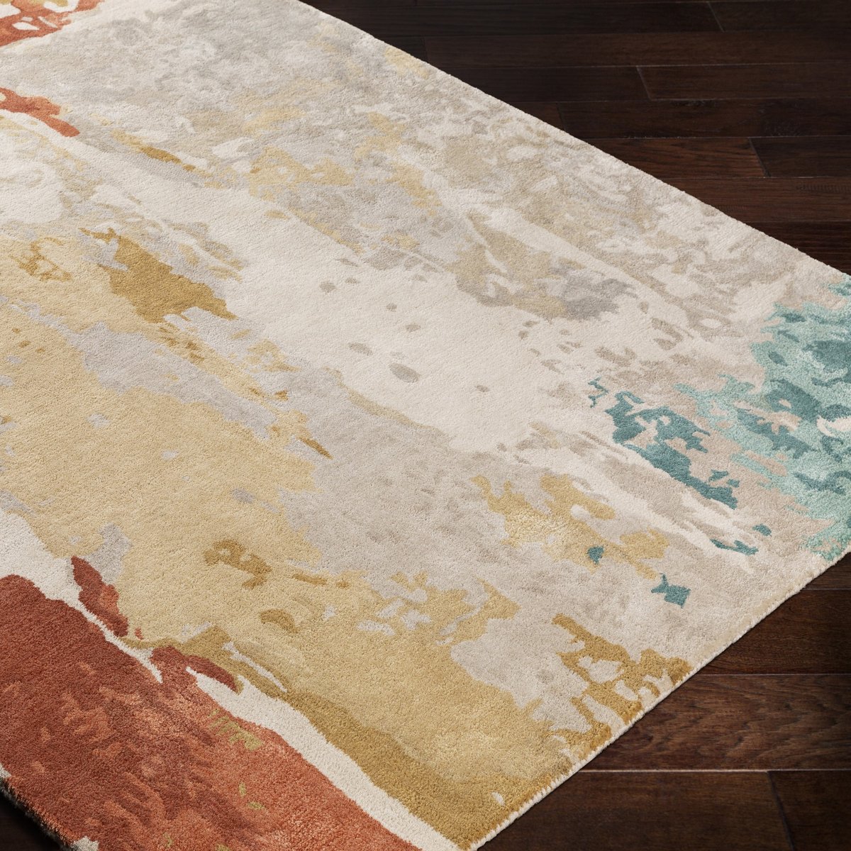 • This unique, abstract area rug boasts a painterly, marbled pattern, adorned with fun pops of brick, coral, and seafoam for a creative and contemporary aesthetic. The interplay of colors and designs dance across the surface of this modern rug, standing as a reflection of your appreciation for the extraordinary.