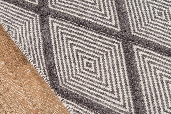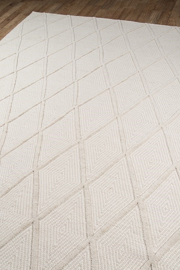 • A textured diamond pattern makes this modern area rug a visually intriguing focal point. Boasting two neutral colorway options, this sophisticated, exquisite area rug effortlessly complements any decor.