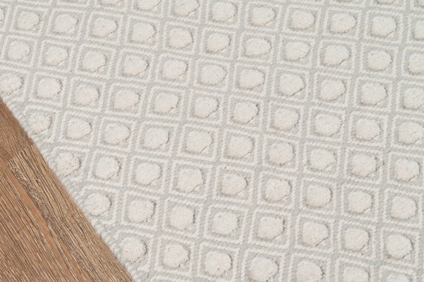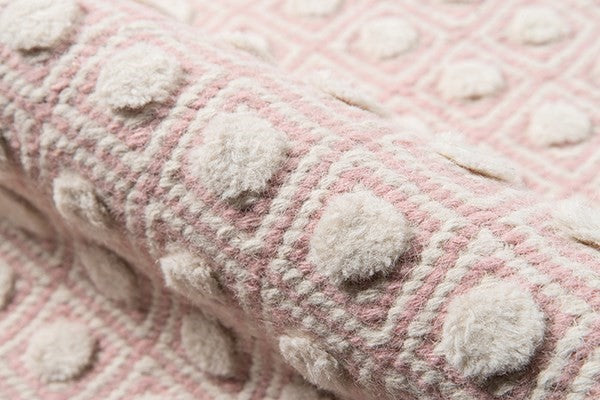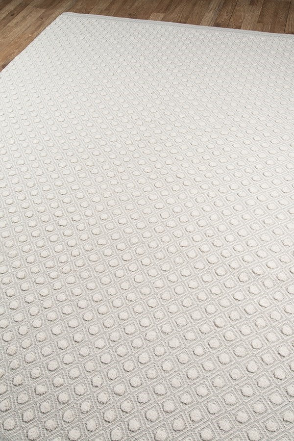 • The Windsor area rug features an optical diamond and Swiss dot pattern with eye-catching texture and soft wool fibers. It is available in pastel colorways designed for soft sensibility.
