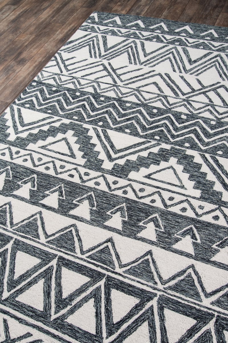 • Able to harmonize with Southwestern and bohemian accents, this contemporary piece features a striking, tribal-inspired design in charcoal hues for an eye-catching focal point in any living or dining space.