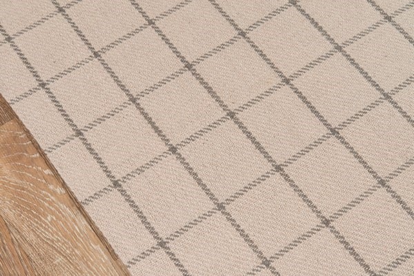 • Deerfield is a striking country area rug that features a simple windowpane plaid pattern, the open stripes lending a breezy visual effect. This piece is available in two versatile colorways for easy coordination.