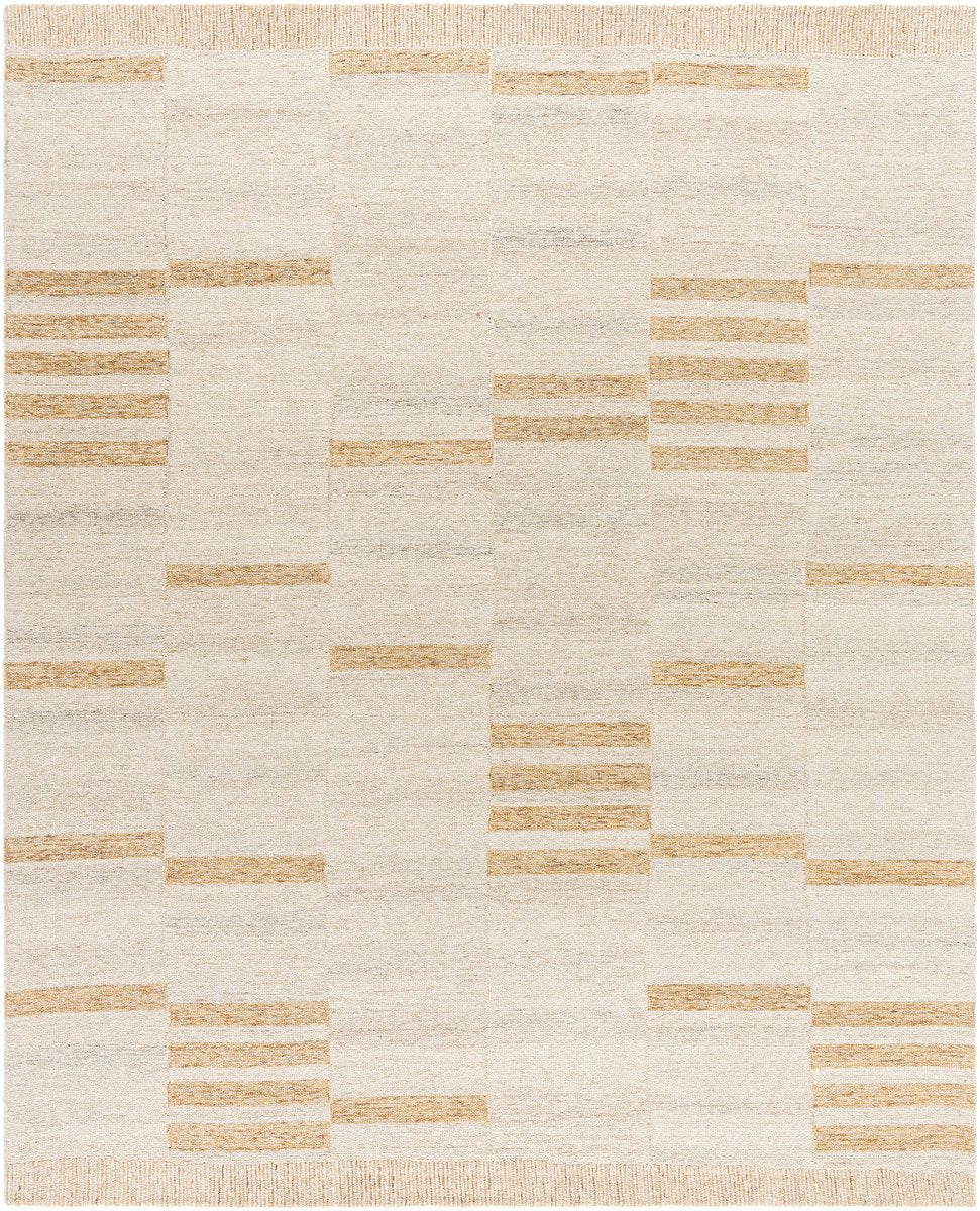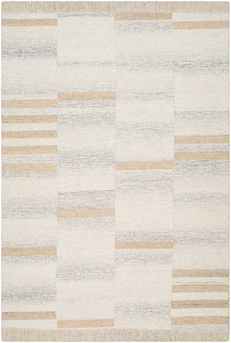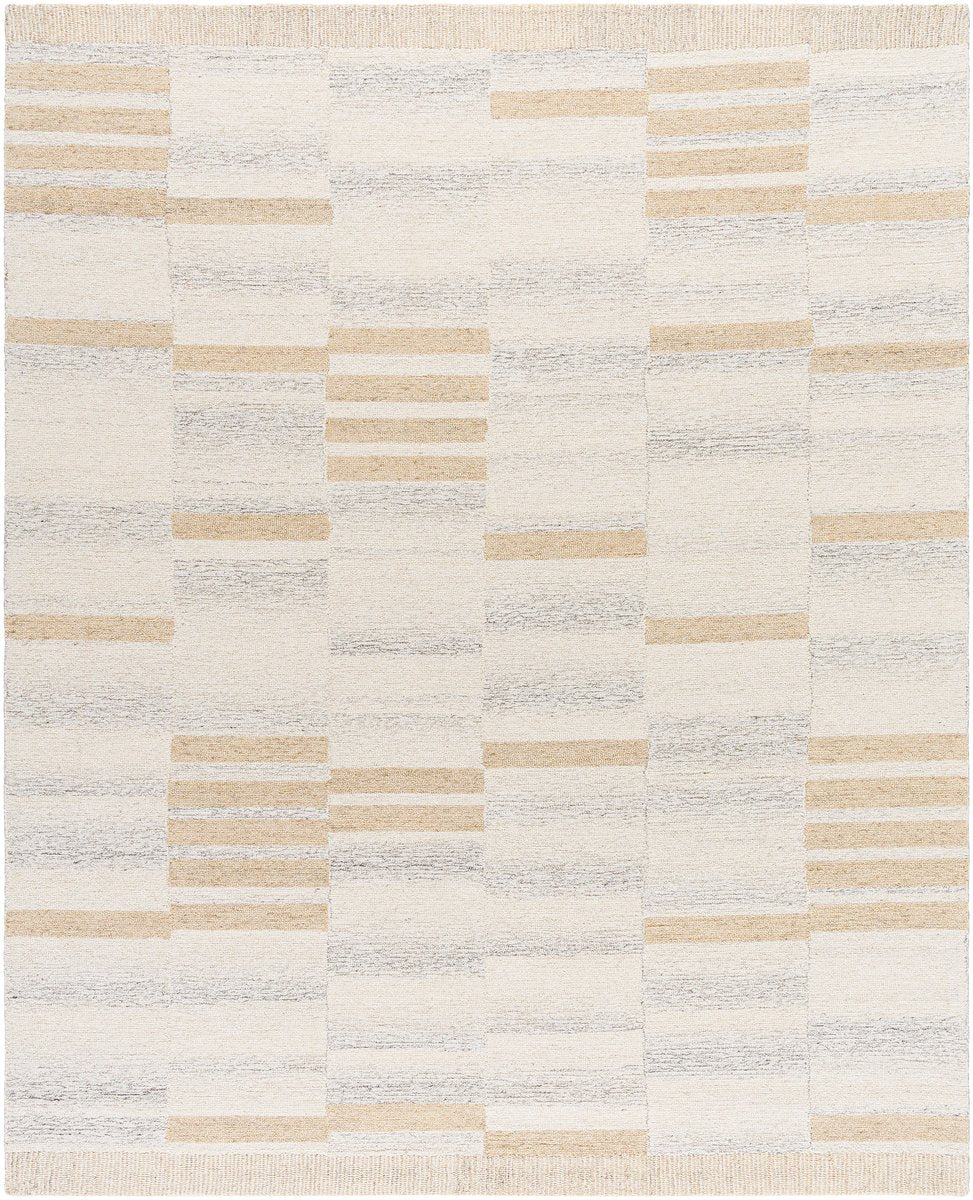 The breezy Max 496799 area rug features a segmented stripe pattern in calming neutrals with universally-flattering appeal. This gorgeous Becki Owens x Surya design is thoughtfully handcrafted from premium wool for lasting comfort that active families can depend on.