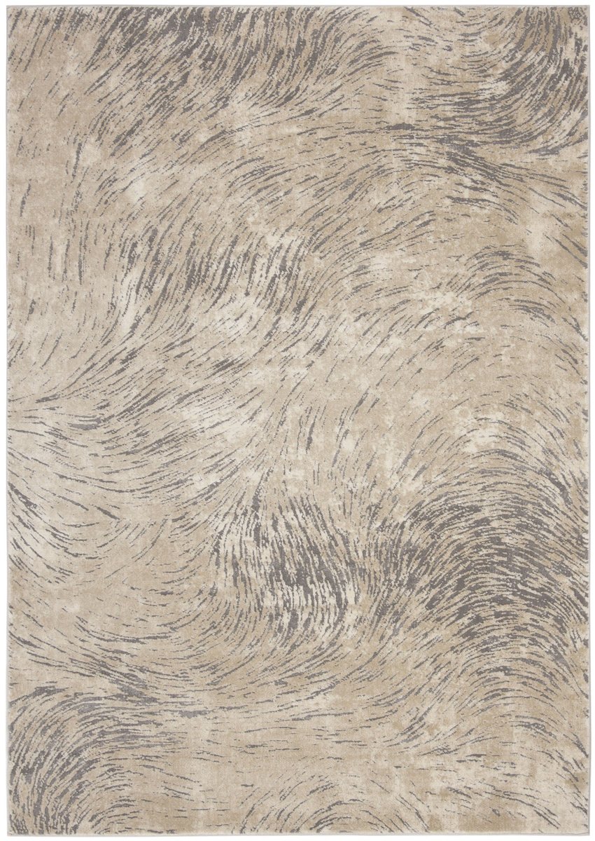 • This swirling ivory and grey design could work well in any chic or modern space-pick a no-shoes zone with low traffic for the most extended life of your purchase.