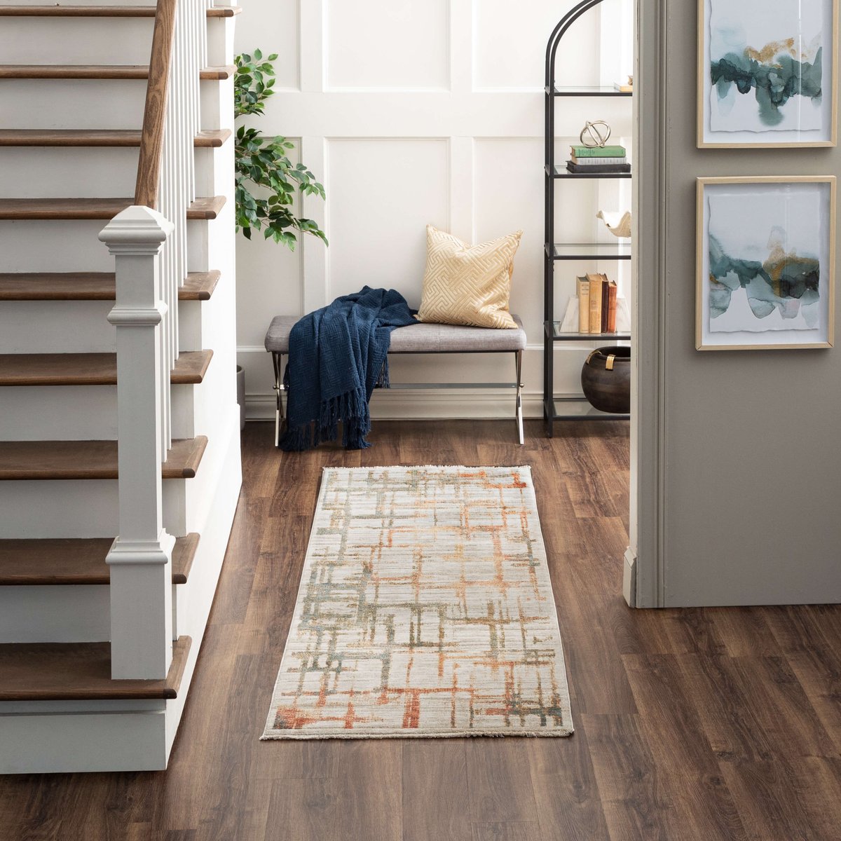Ranging from contemporary to transitional designs, Karastan Rugs' Memento Collection features sophisticated patterns with a textured pile that utilizes different types of yarn to create a three-dimensional effect. Utilizing a pastel color pallet of yellow, olive, teal, and coral, Memento creates a soft, quiet and inviting theme making t this collection truly unique.