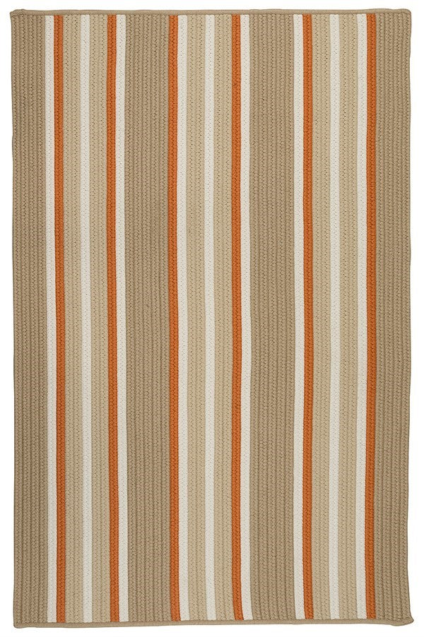 • The Mesa Stripe area rug is 1/2" thick and braided from durable polypropylene materials. It will last longer when paired with a quality outdoor rug pad.