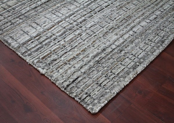 • A thick pile of natural and synthetic fibers is handwoven together to create this comfy, functional rug.