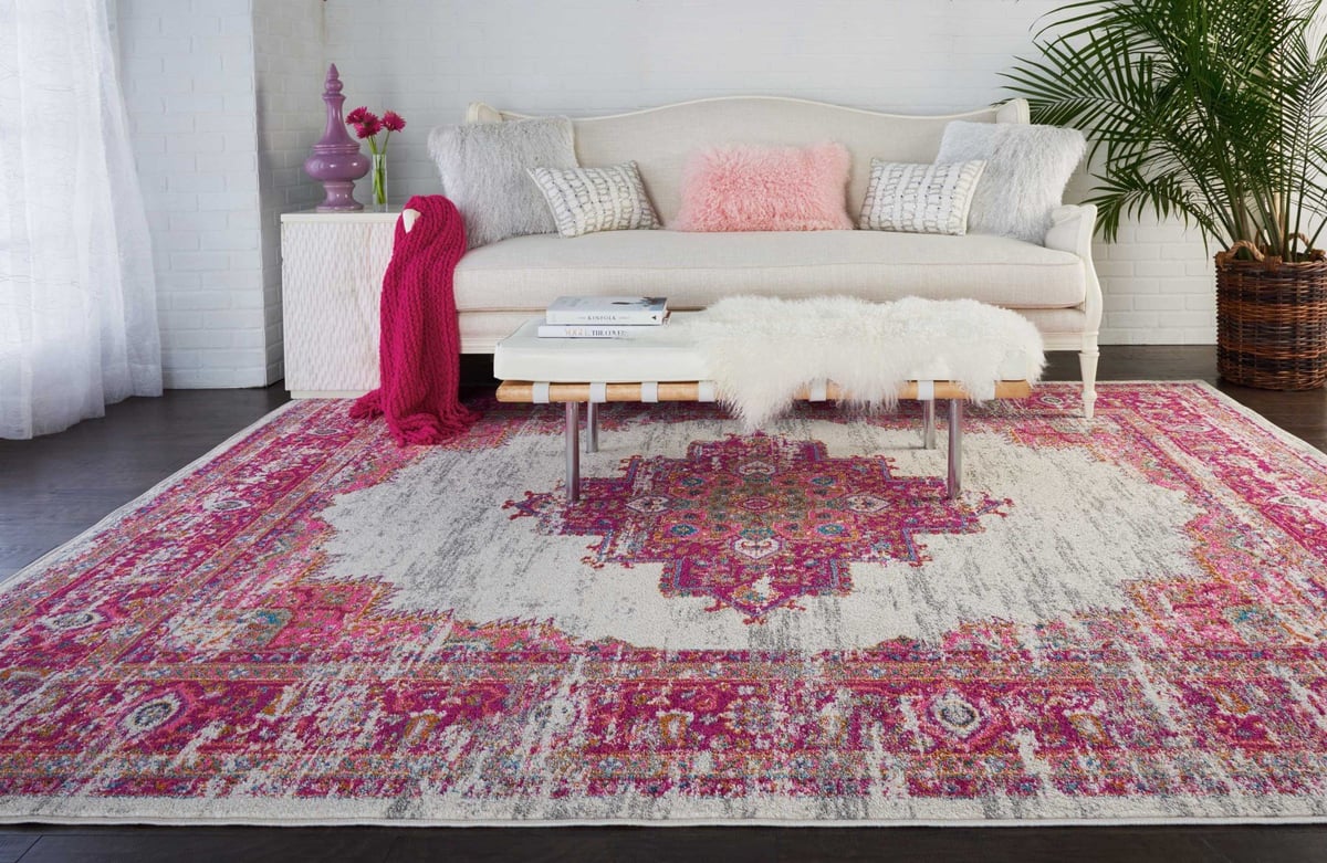 The gorgeous PSN03 area rug by Nourison utilizes overdyed coloration to rejuvenate a traditionally inspired Persian medallion design. Like its Passion collection companions, this style is rendered in sturdy synthetics sure to prove practical for any home.