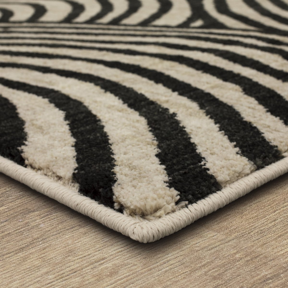 • Arching lines adorn the surface of the Remolino area rug in rich onyx black over a versatile tan – easy to coordinate and easy to enjoy. Use this contemporary rug to pull together a modern living room, to underscore a contemporary dining table, or to soften your step at the bedside.