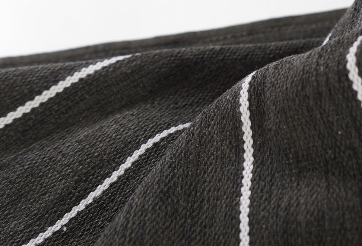 • This timeless, yet completely contemporary area rug offers a thin and slightly imperfect stripe pattern with plenty of texture and charm. Available in black, green, or slate, this modern area rug is as well-suited for traditional homes as it is for the trendiest space.