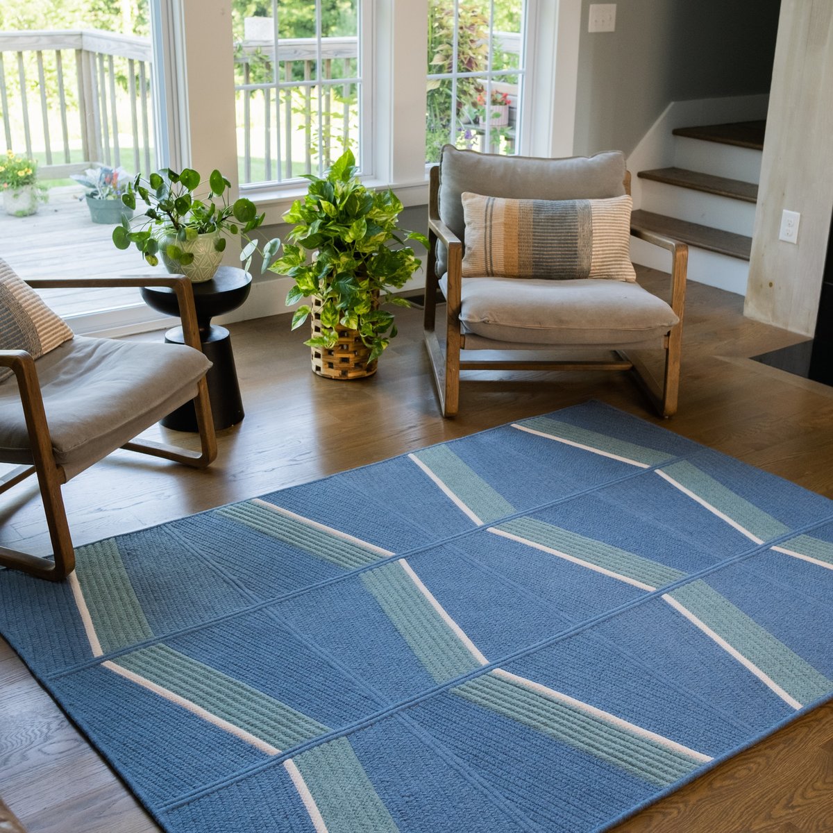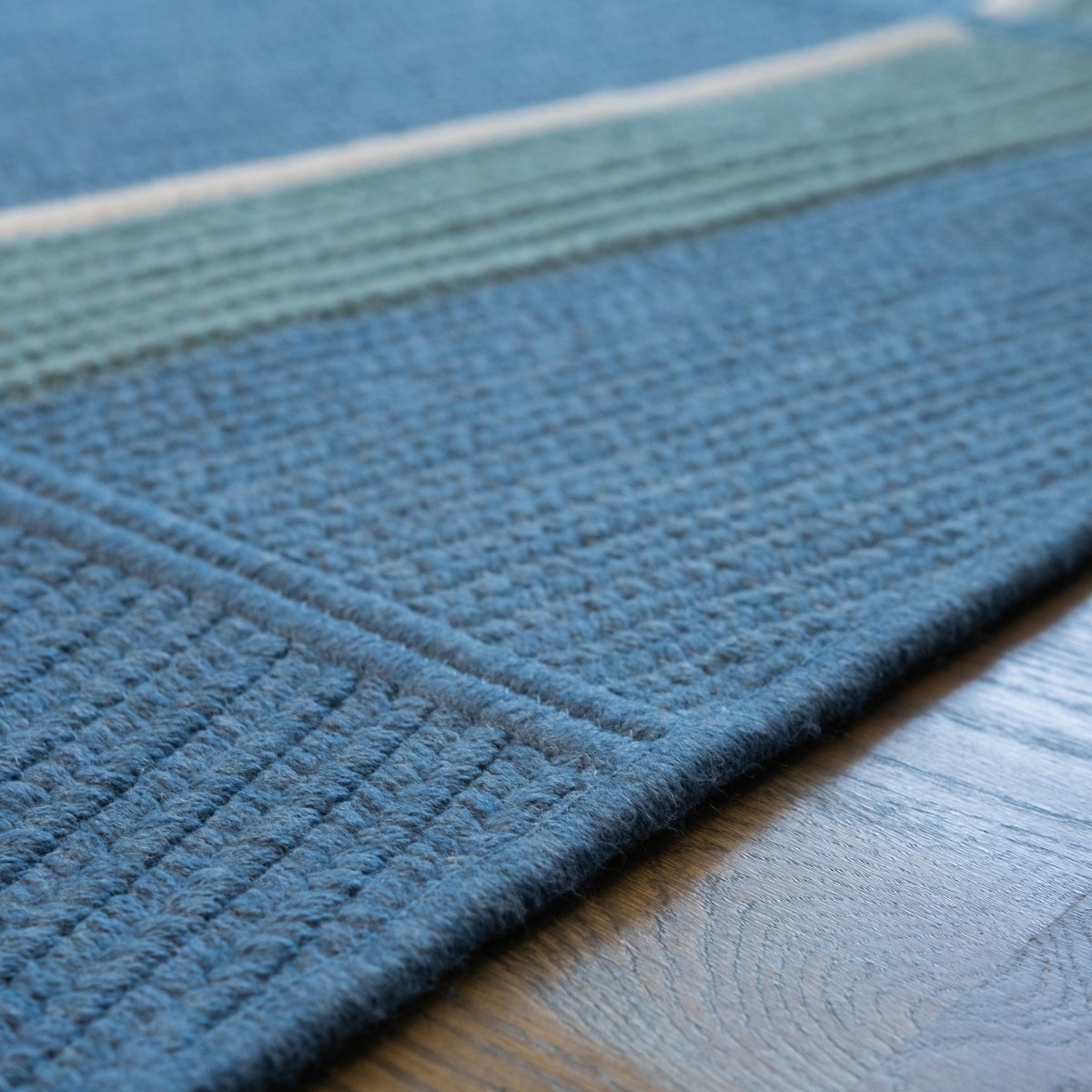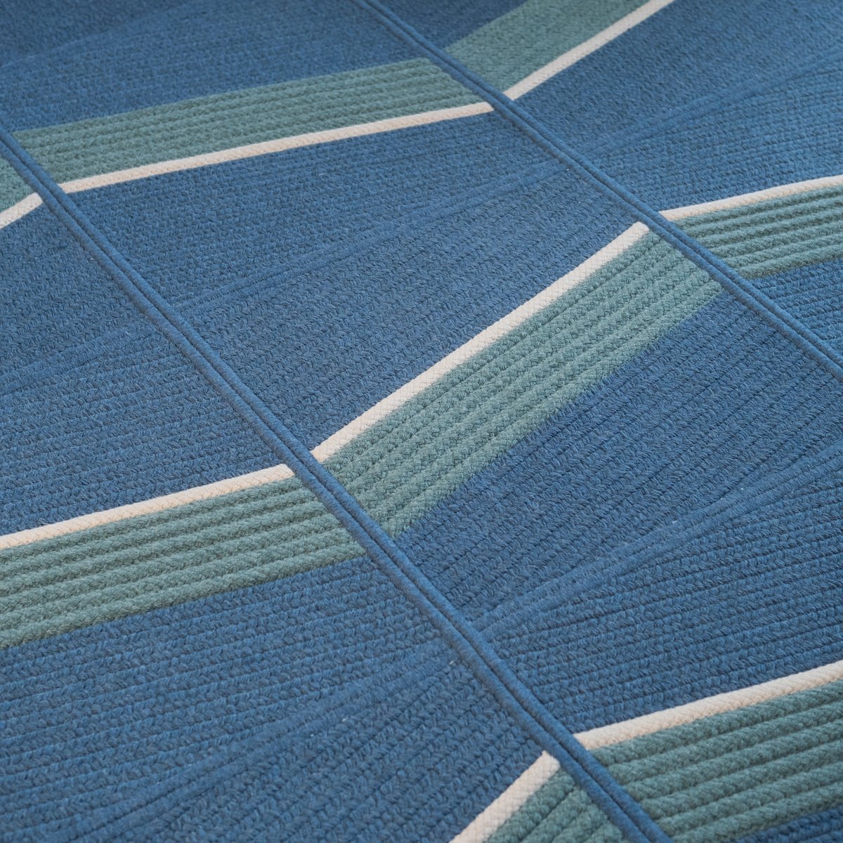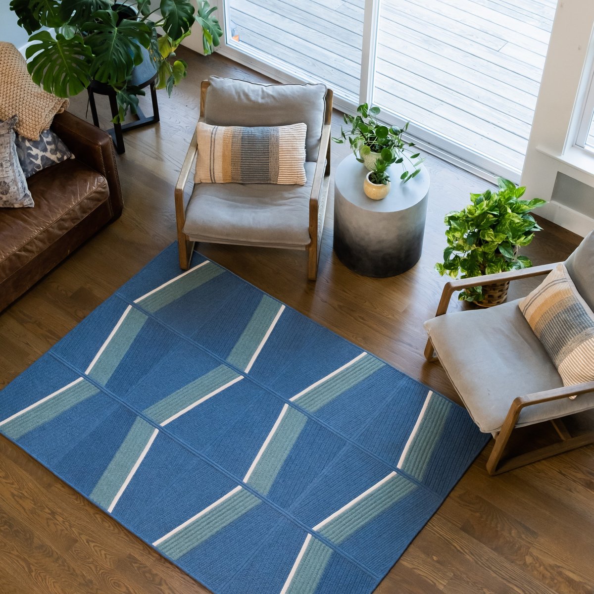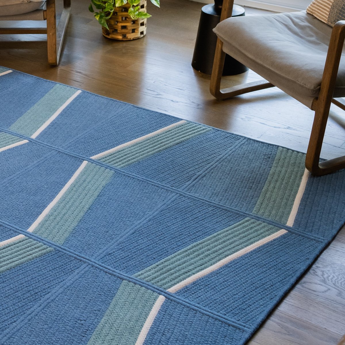 Decorated with geometric waves in vibrant blues and sea greens the Sapphire area rug beautifully captures the energy of the California coast. This piece is handcrafted by the skilled artisans at Colonial Mills using a sturdy wool and synthetic blend for long-lasting style.