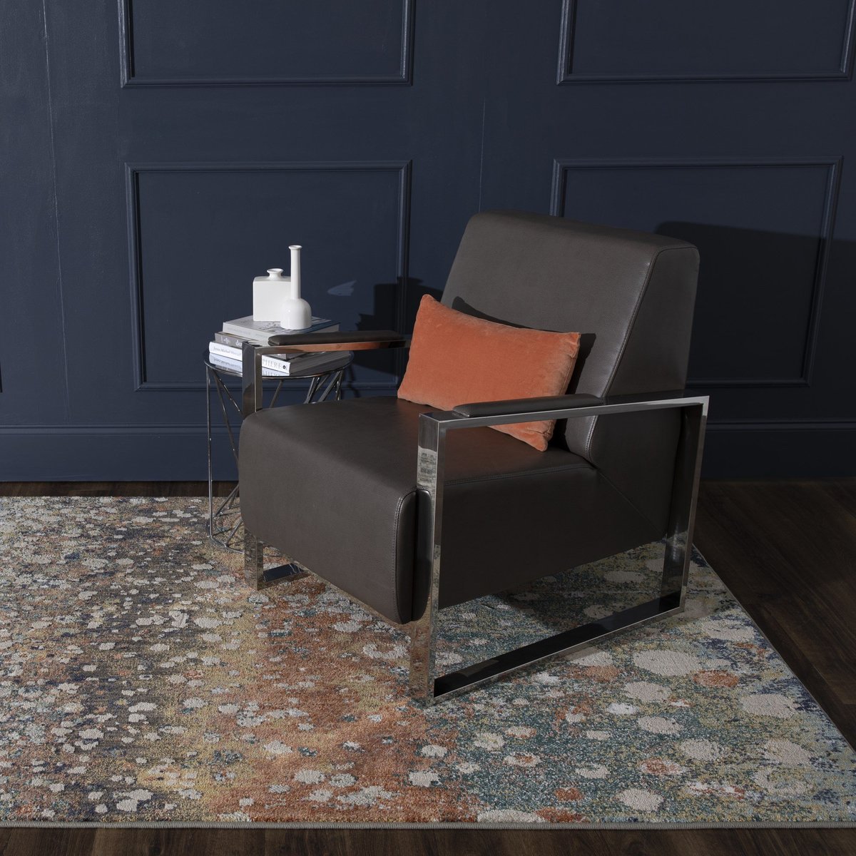• This bold, modern area rug features a painterly, abstract pattern in shades of blue, gray, and rust for a bold and impactful look.