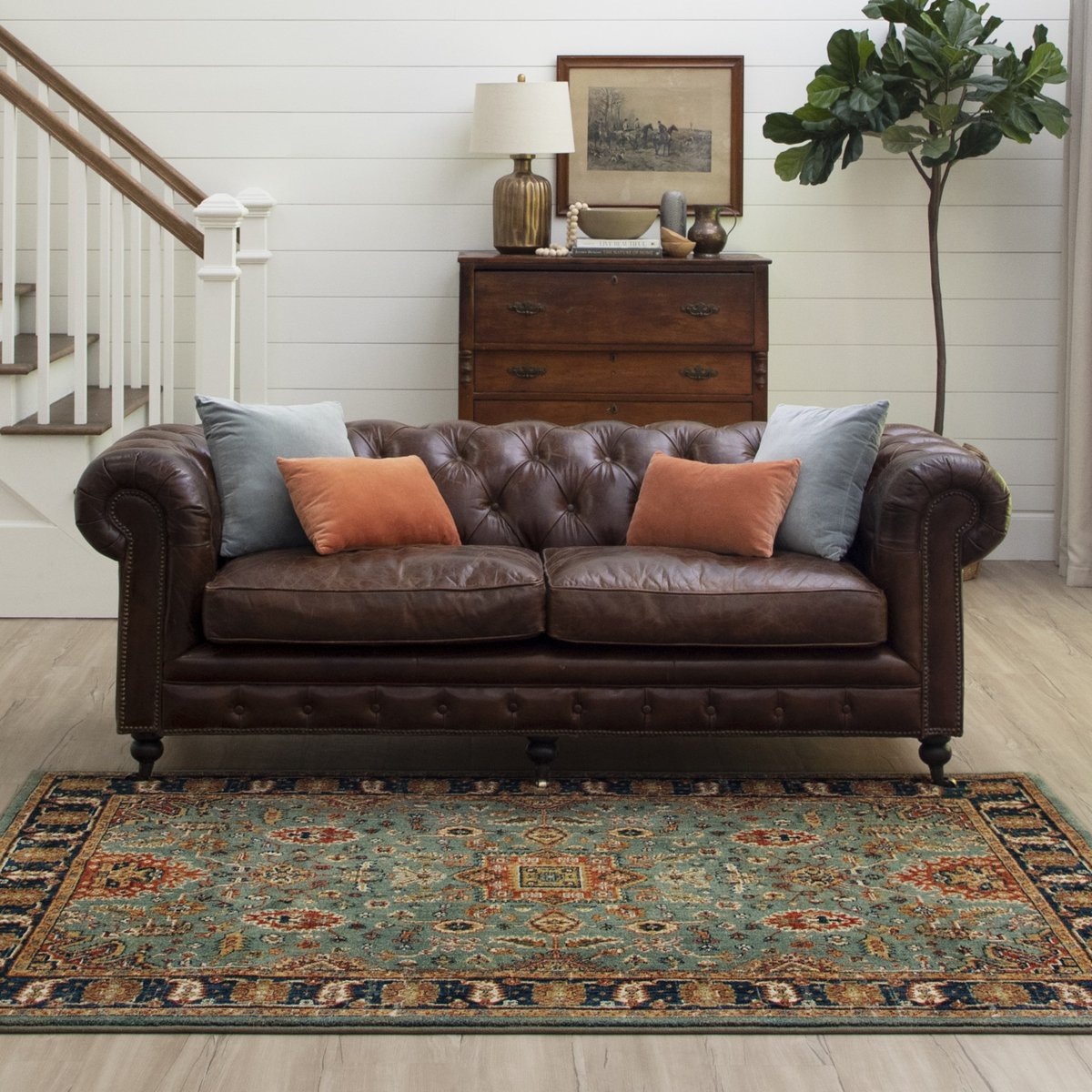 • Add a striking statement piece to any bedroom, living room, or entryway with the timeless charm of this traditional piece, which features a balanced look of cool aquamarine and warm red tones.