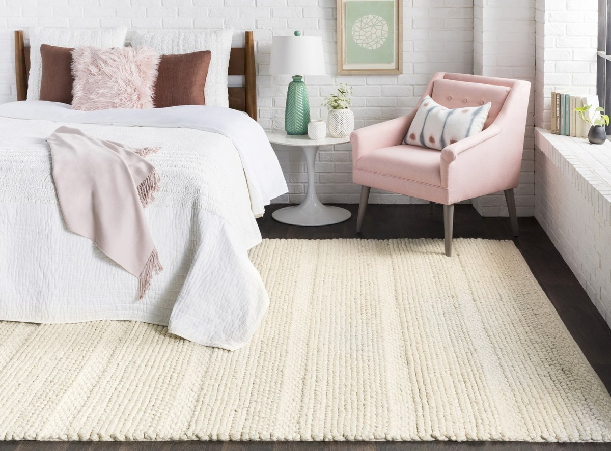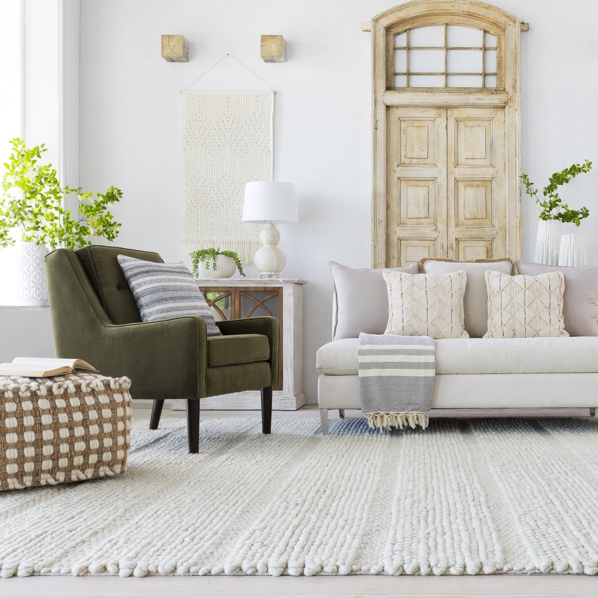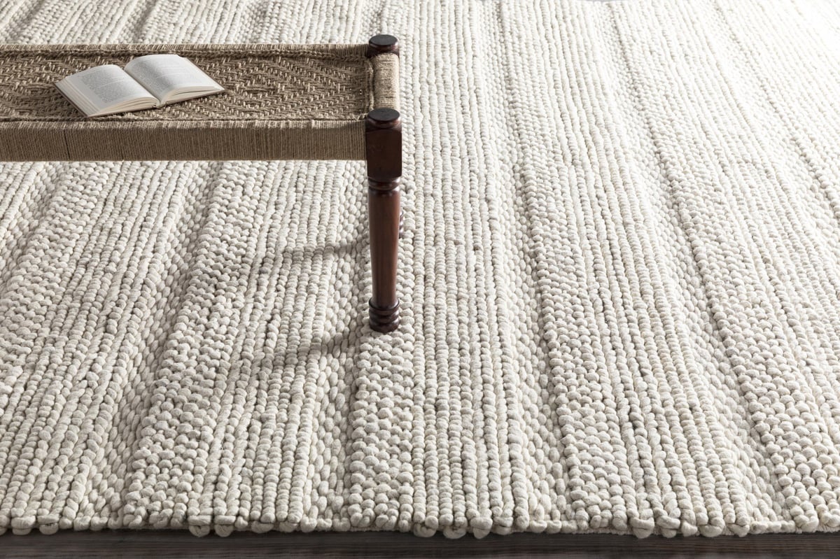 • Skilled artisans weave every Tahoe collection area rug by hand using thick 100% wool yarns for an irresistible underfoot experience. Pile-free construction ensures easier cleanup.