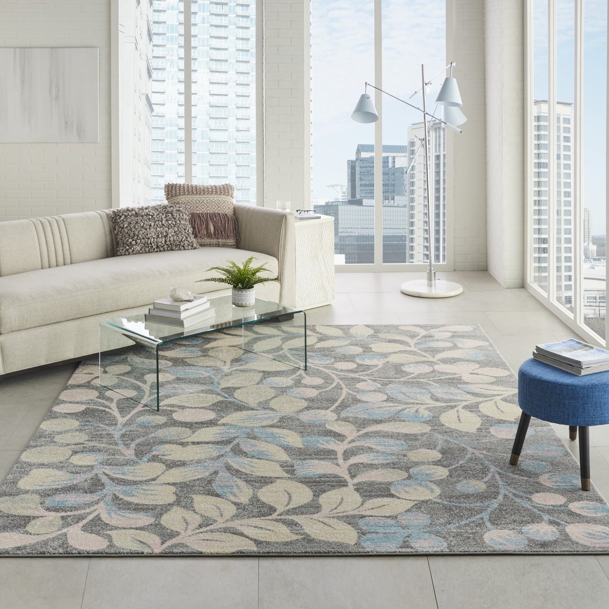 • Choose from a variety of color options to best match your interior palette. This floral area rug is well-suited to a variety of decor styles, from clean contemporary themes to specific motifs like nautical or cottage chic.