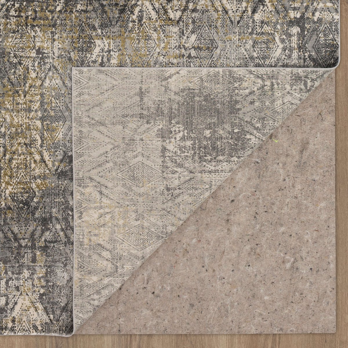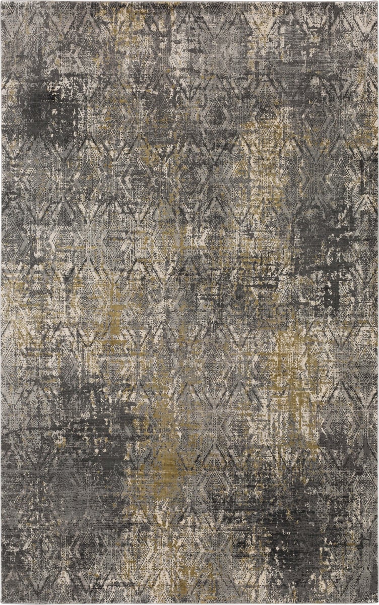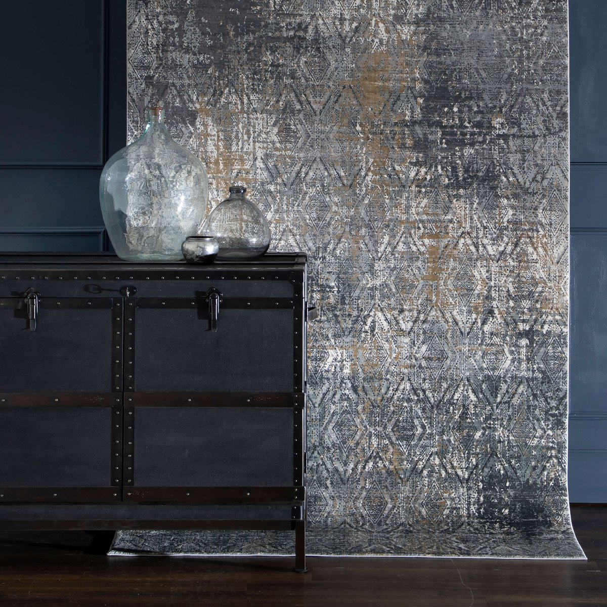 Shadows of a globally inspired diamond lattice motif are faintly featured beneath eroded washes of grey and tobacco brown color in the contemporary design of Karastan Rugs' Botan Area Rug in Anthracite. Influenced by abstract art, the Botan is artfully distressed and offers an aura of relaxed elegance. A modern marriage of textures, the subtle shimmer of viscose is woven alongside soft and stain resistant premium polyester in the debuts of Karastan Rugs' new Tryst Collection.