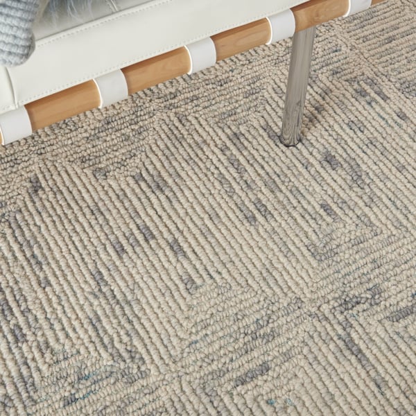 Breathe life into your interior decor and invite admiration in your favorite room with this hypnotic Vail VAI-04 area rug from Nourison. The Vail collection features soft, handmade wool rugs durable enough for use in today's active households. Thanks to the loop pile and natural wool fibers, each piece has a textural appeal that helps ground and anchor any space.
