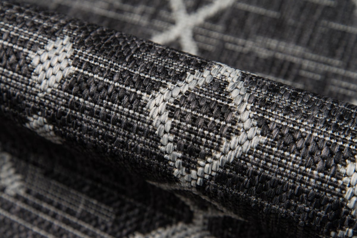• With hints of geometric and tribal style, this chic modern rug is a favorite of backyard patios, living rooms, and bedrooms.