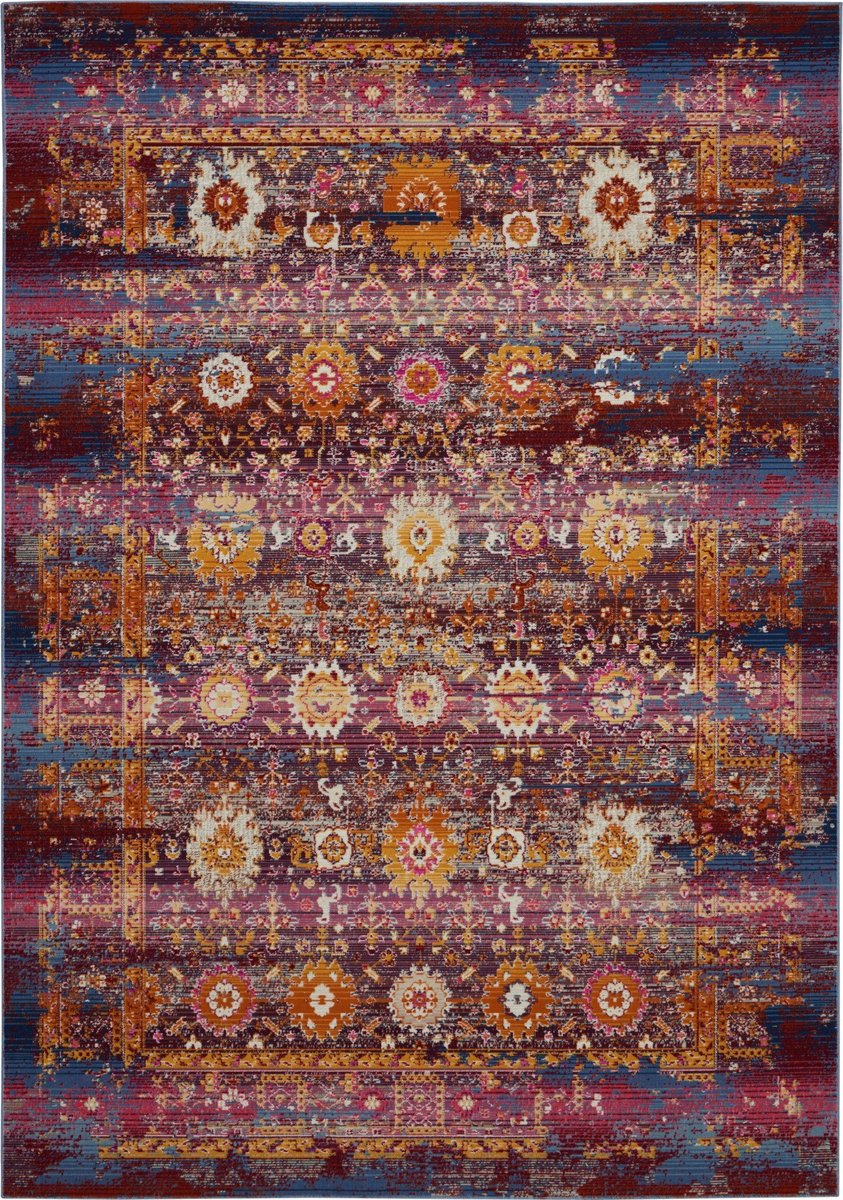 • The rug's vintage overdyed aesthetic melds beautifully with eclectic or boho style spaces.