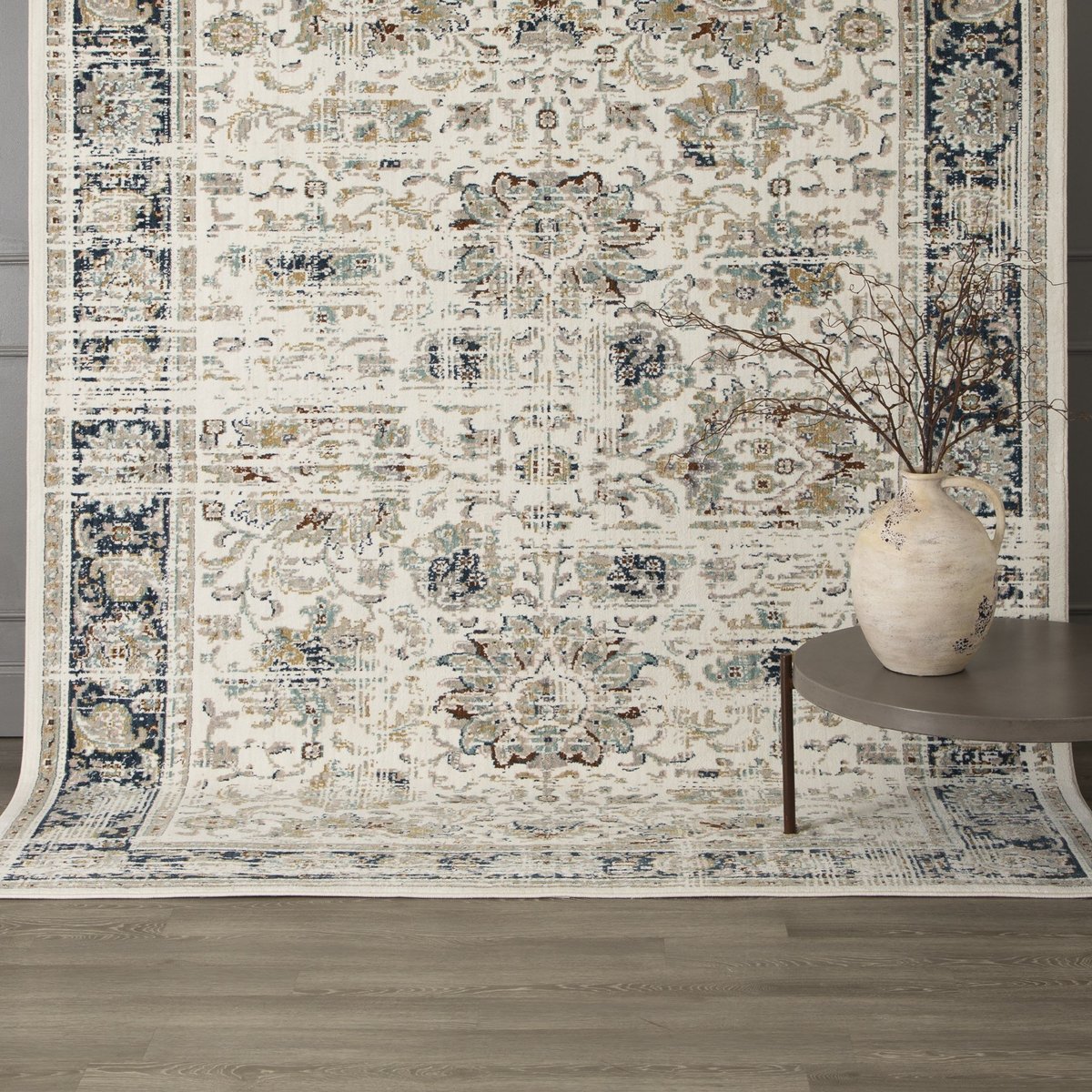• Strong faded striations sweep across the surface to give this traditional area rug a vintage look – yet its strong modern construction makes it perfect for hardwearing placements like dining rooms and bustling living spaces.